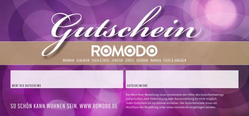 Wo kann ich den ROMODO-Gutschein einlösen? Im gesamten ROMODO-Shop.