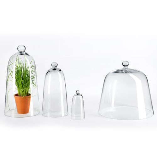 Wir finden die Glasglocken super praktisch. Man kann sie als Mini-Gewächshaus für zarte Pflanzenzöglinge verwenden oder auch Küchenkräuter schützen. Im Sommer wird leckeres Gebäck vor lästigen Wespen und anderen Insekten geschützt. Schöner Nebeneffekt, Ihre Köstlichkeiten bekommen unter der Glocke ihren großen Auftritt. Am besten kauft man gleich mehrere Größen. So ist man flexibel und wenn man gleich mehrere Glasglocken kombiniert, bekommt der praktische Zweck noch eine dekorative Note.