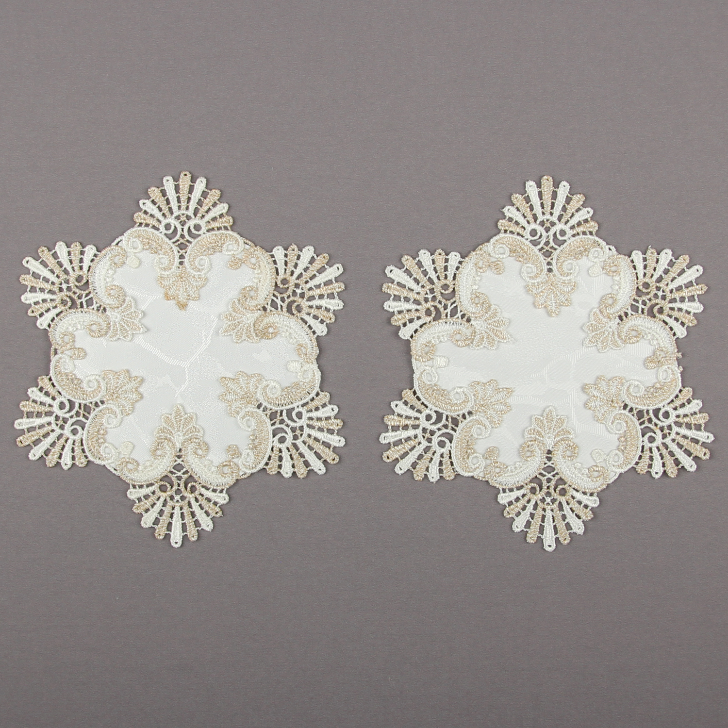 Das Design Julia ist in sekt und anis Tönen gehalten. Die Decke besteht aus hochwertiger Spitze. Sie ist rund und hat einen Durchmesser von 22cm. Das Set besteht aus zwei Spitzendecken.