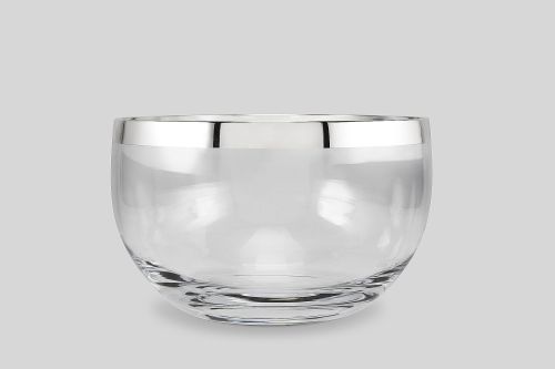 Die Schalen "Elegant" aus Kristallglas sind mit reinem Silber verziert. Das reine Silber wird mit dem Pinsel von Hand aufgetragen und poliert. Die Schale hat einen Durchmesser von 23 cm und eine Höhe von 14,5 cm.