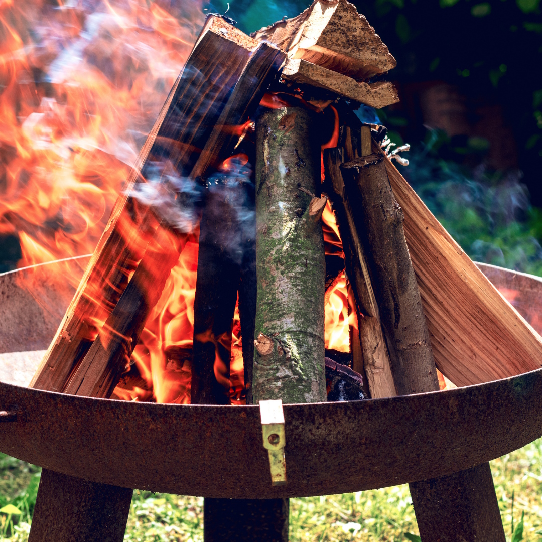 Die Holzscheite sollten mittig zu einer Pyramide aufgestellt werden, um den Funkenflug zu reduzieren. Anschließend platziert man mittig ein Knäuel aus Zeitungspapier oder Holzwolle. Das Ganze wird dann mit einem Stabfeuerzeug oder Streichhölzern entzündet. Zusätzlich bietet es sich an, Grillanzünder zu verwenden. Von Brandbeschleunigern wie Spiritus ist aus Sicherheitsgründen generell abzuraten. Gleiches gilt für Benzin, welches neben dem Sicherheitsaspekt noch sehr unschöne Spuren am Material hinterlässt. Die richtigen Feuerschalen und das passende Zubehör finden Sie bei uns im Shop unter der Marke SvenskaV. Eine Grillplatte für Feuerschalen gibt es von der Marke Raumgestalt.