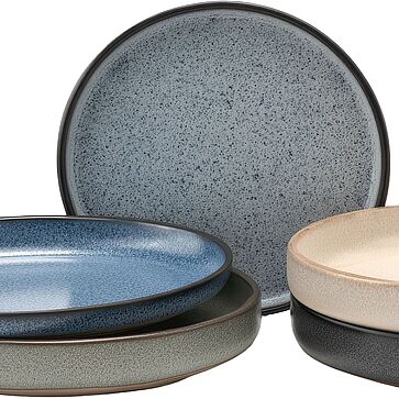 Steingut kommt in robustem Alltagsgeschirr vor, wie Auflaufformen, Backschüsseln, Suppentassen und rustikalen Tellern für Familien. Es passt zu Ofenware, mikrowellenfestem Geschirr und stabilen Servierplatten.