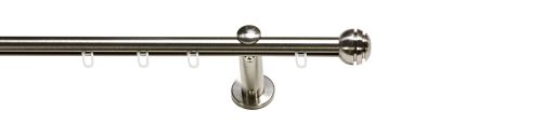 Die Komplettgarnitur Carrera besteht aus 2 Innenlaufschienen mit einem Durchmesser von 19 mm, den Trägern mit 2 Endstücken für die vordere Schiene und den Gardinenröllchen. Bei einer Länge von über 241 cm wird ein Verbinder mitgeliefert. Carrera ist aus Metall gefertigt.